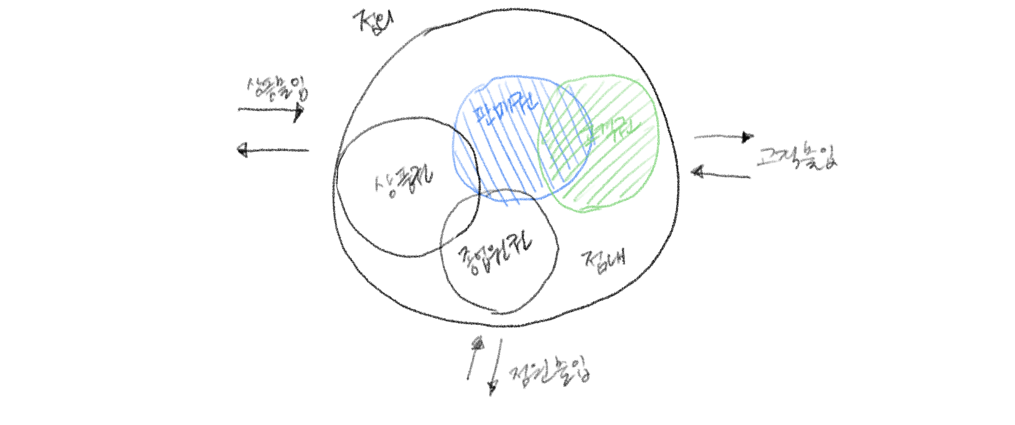 - 상품권: 상품의 반입, 보관, 배달을 행하는 계층으로, 판매권과 접하며, 고객권과는 절대 분리 시킴.