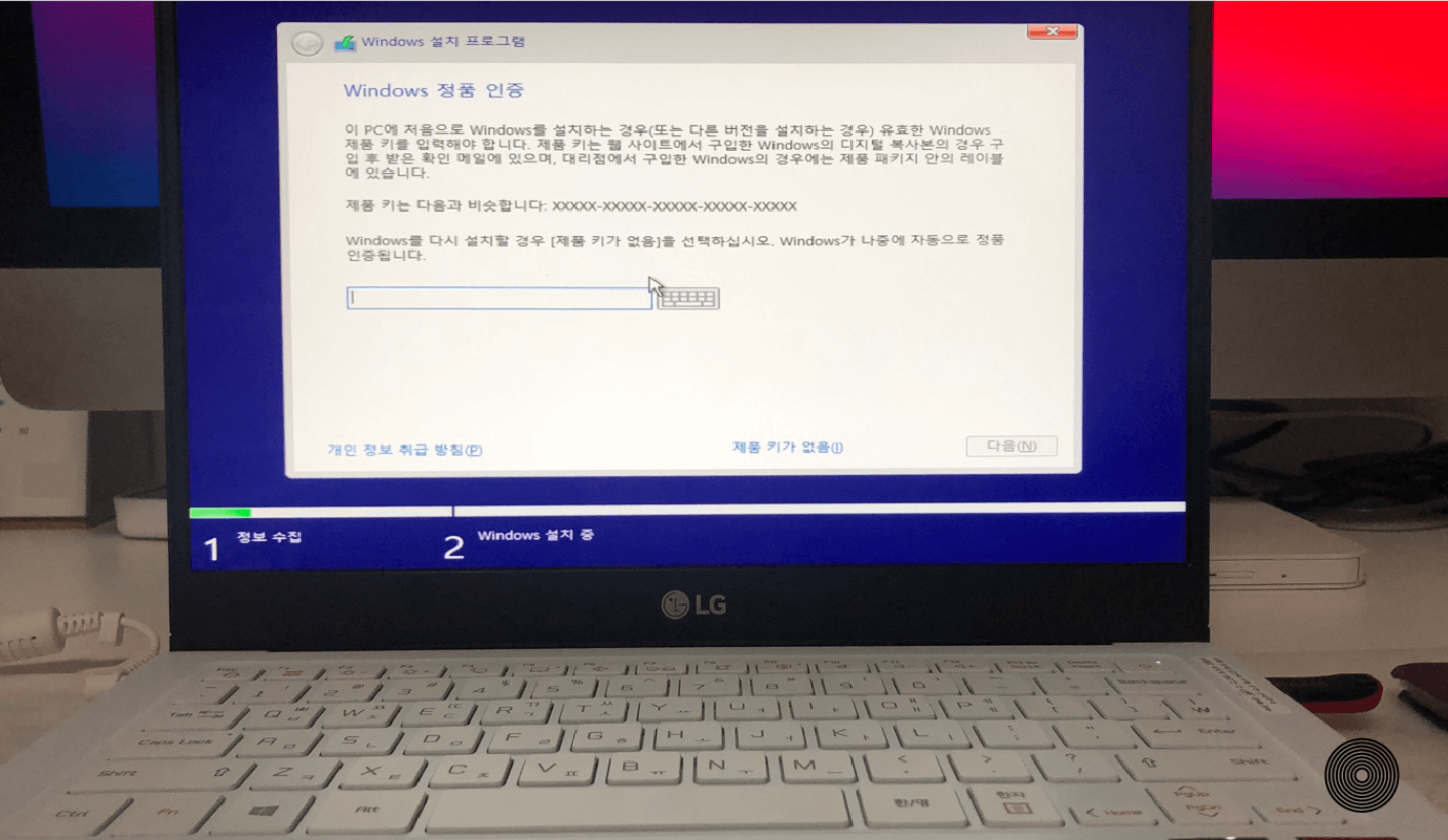LG 울트라 PC 노트북 윈도우 10 설치 완료하였다.