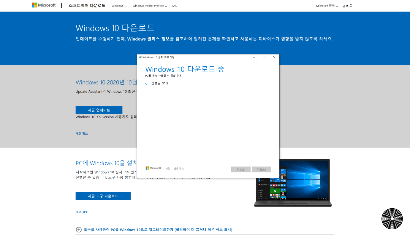 맥을 사용하는지라 부트캠프 (Bootcamp)에서 Windows 10을 다운로드하는데 한 10~20분 소요되었다.