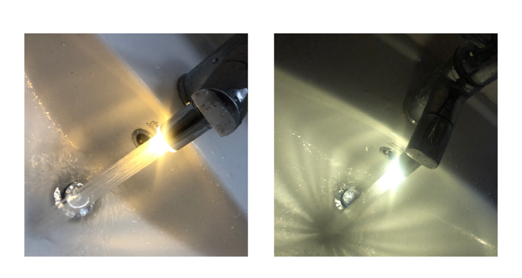 물을 틀 때 비치는 LED Light가 물을 깨끗하게 느껴지게 하며, 감성적인 조명 역할을 하여 기분을 좋게 해 준다.