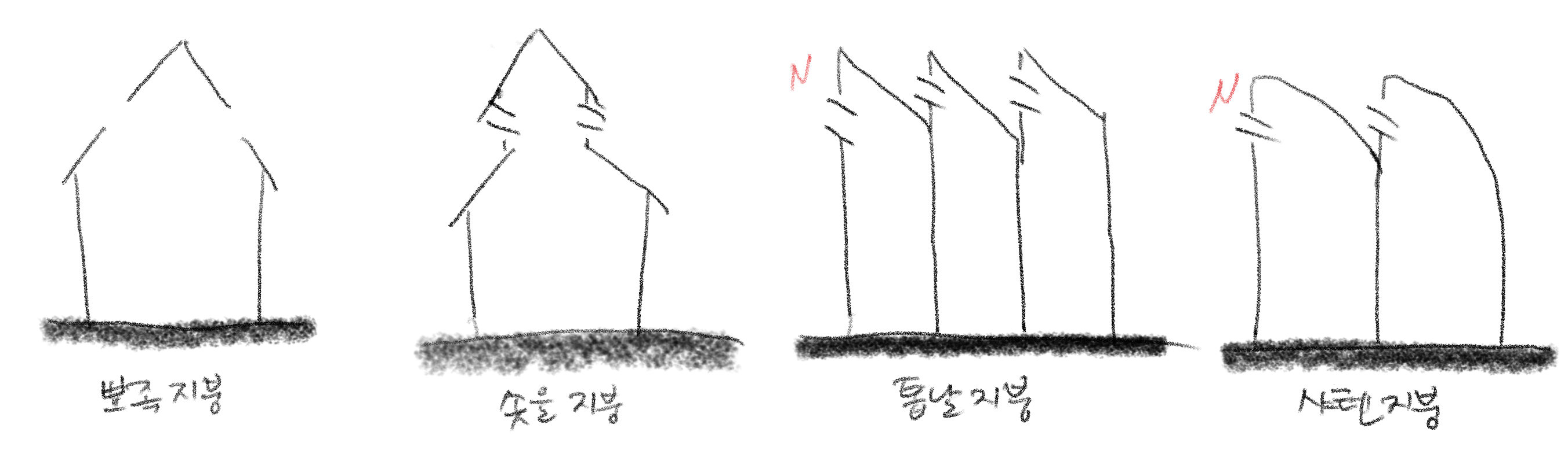 - 평지붕: 중층식 건물의 최상층