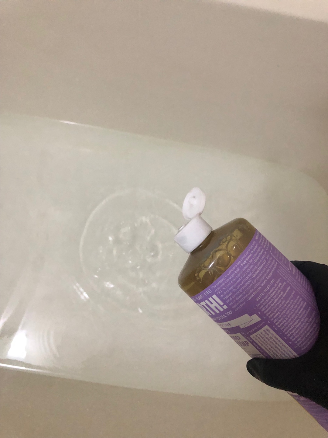 주방세제를 넣습니다. 저는 닥터 브로너스 올인원 액체비누를 넣었습니다.