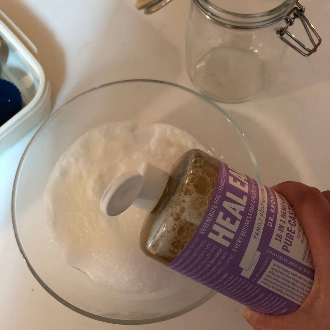 3. 캐스틸 솝 1 1/2 테이블 스푼을 넣는다. (눈 대중으로)