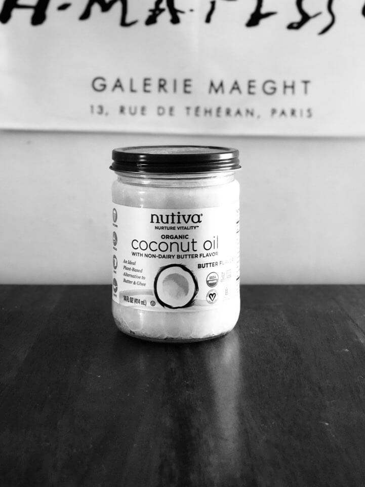 남편은 부드럽고 진한 버터의 향미를 가진 기 버터 (Ghee Butter), 저는 누티바 비건 코코넛 오일 (버터 맛)을 먹습니다.