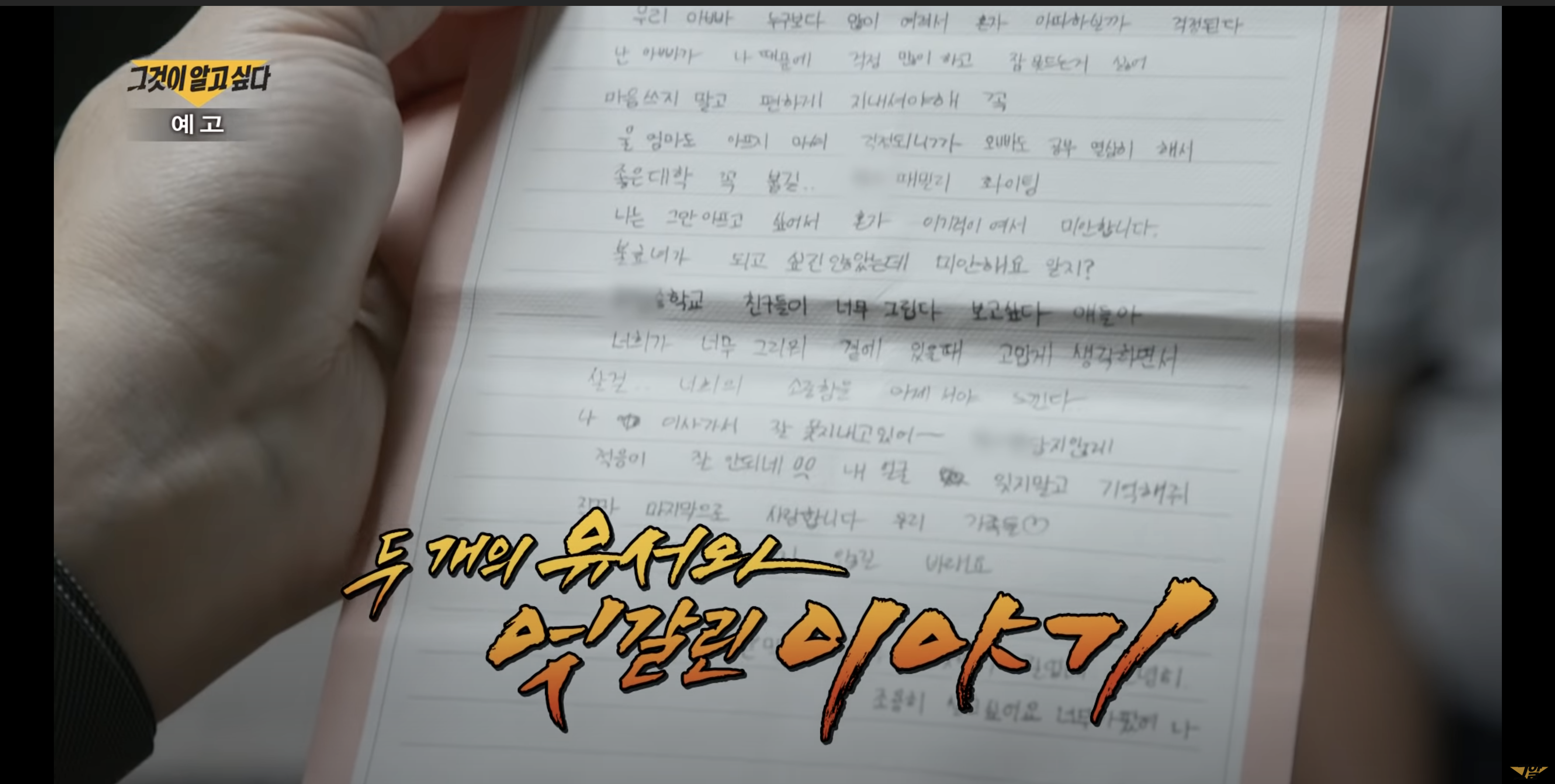 추모제가 있던 그 날, 미소 아버지는 사건 이후 가족도 선뜻 들어갈 수 없었던 딸의 방을 들어갔다. 그가 방을 정리하던 중 놀랍게도 숨겨져 있던 딸의 유서를 발견할 수 있었다. " 나 너무 아파 어쩔 수가 없었어요. 1월에 있었던 안 좋은 일 꼭 해결되면 좋겠다. 나쁜 사람 꼭 벌 받아야 하잖아, 그렇지?" 故이미소(가명)양 유서 중의 대목이다. 유서에는 가족에게 전하는 미안함, 고마움, 그리고 자신에게 참을 수 없는 고통을 안겨 준 '그 날'에 대한 내용이 담겨져 있었다. '그 날' 미소에게 무슨 일이 있었던 것일까.