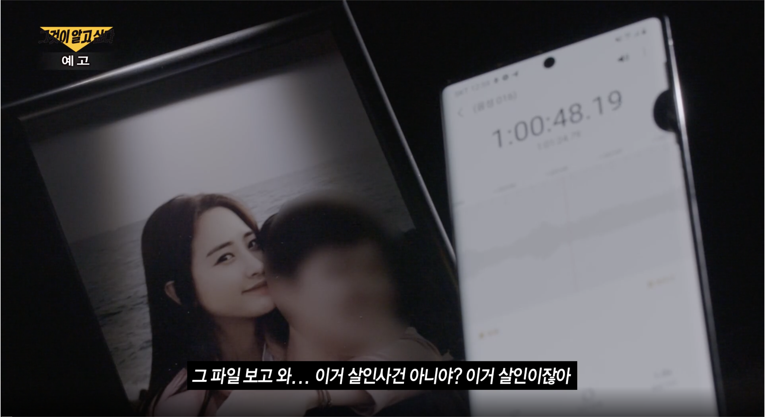 언니가 발견한 동생의 휴대전화에서는 약 2시간가량의 음성파일이 들어있었고, 동생 은애씨와 남자친구 최 씨(가명)의 대화가 녹음되 있어고, 사고 당시의 상황도 고스란히 남아있었다.