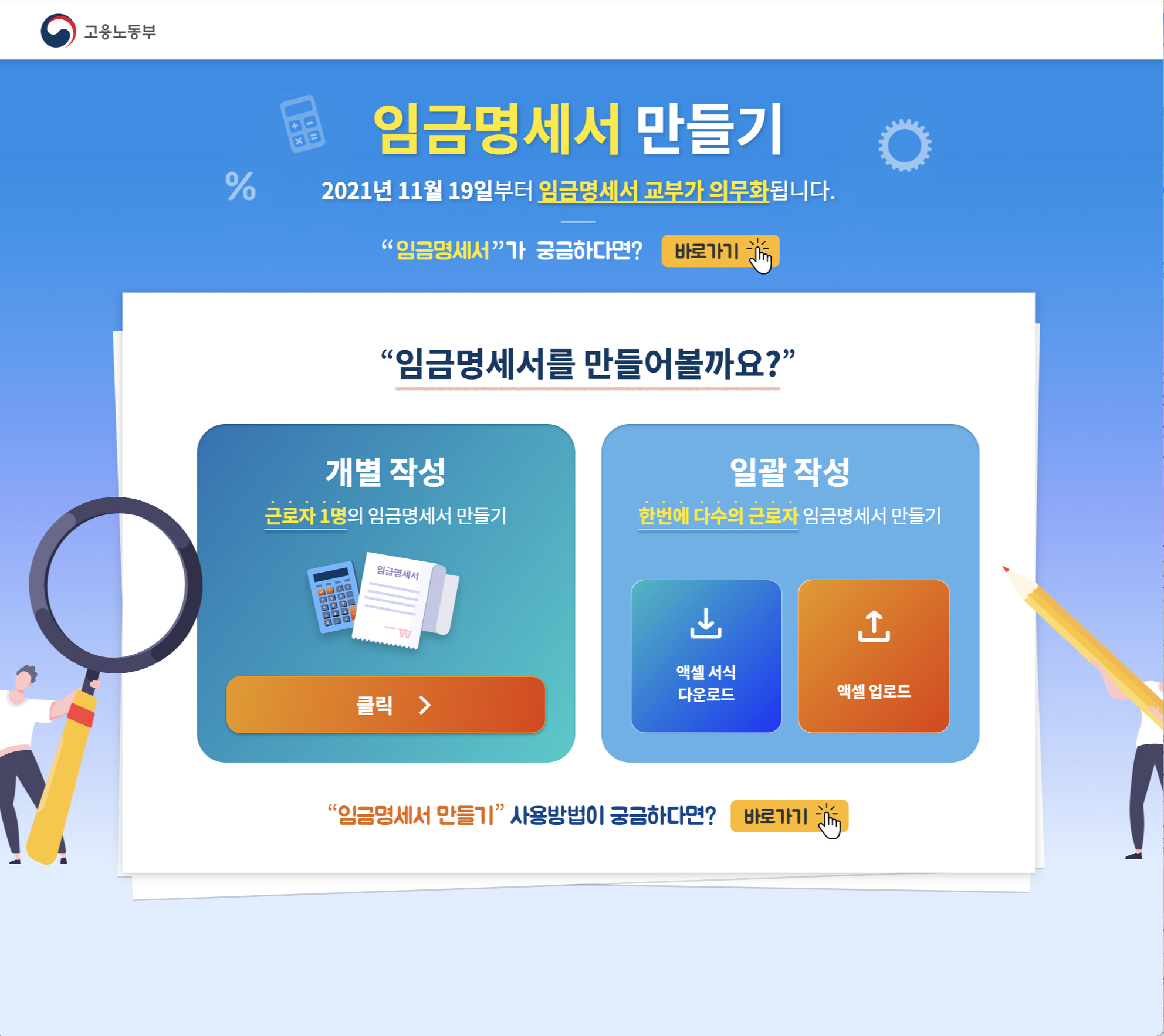 고용노동부 홈페이지를 통해 '임금명세서 작성 프로그램'을 무료로 보급하고 있다.
