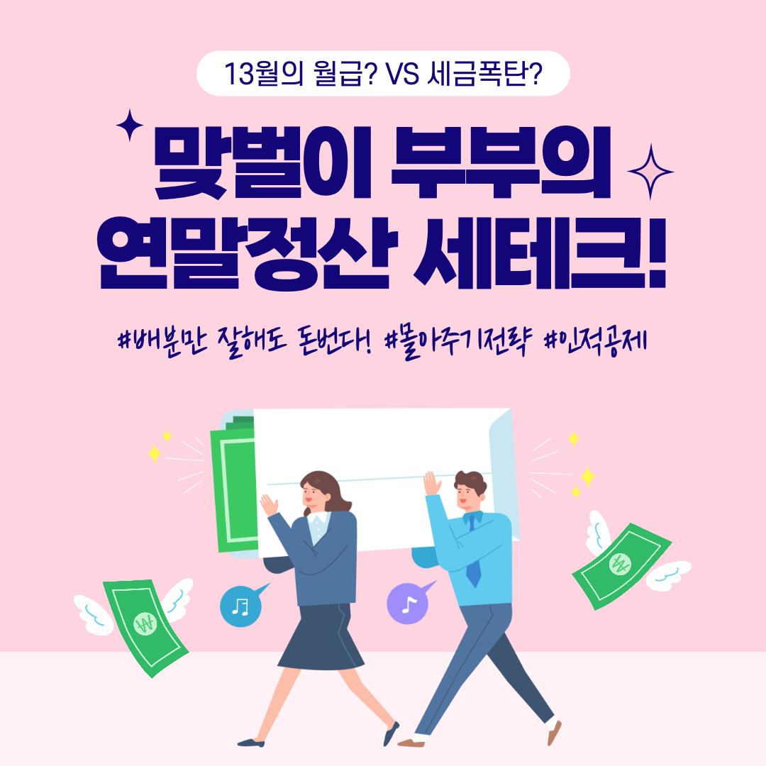13월 보너스 연말정산 타임이 돌아왔습니다. 근로자라면 꼼꼼하게 챙겨야하는 연말정산. 투자 만큼이나 절세 역시 중요한 제테크입니다. 여러 절차와 복잡한 계산으로 어렵게 느껴졌던 연말 정산 2021년 더욱 쉽고 간편해졌습니다. 2021년 연말정산 새롭게 알아야 할 점 및 사전준비 그리고 맞벌이 부부라면 꼼꼼히 챙겨하는 사항을 정리해봅니다.