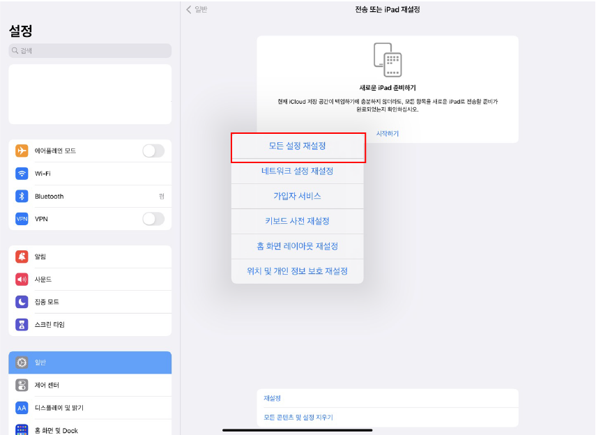 4. 아이패드를 매직키보드에서 떼어 낸 후, 아이패드 모든 설정 재설정 하기