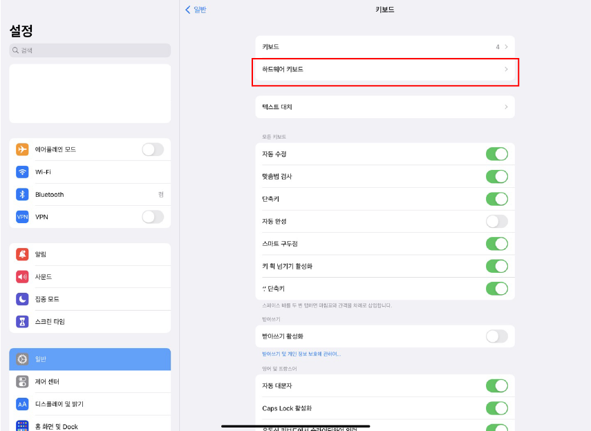 4단계 하드웨어 키보드 (Hardware Keyboard) 탭을 엽니다.