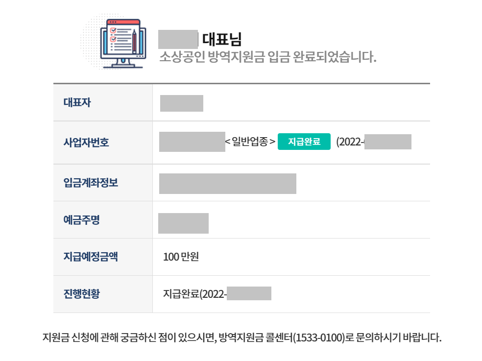 신청방법은 어렵지 않다. 신청하기 빨간 버튼을 누르고, 대표 본인 인증을 통해 지원 여부를 확인하고 지원금 받을 은행을 입력하면 익일에 입금이 된다. 작년 버팀목플러스, 희망회복자금을 받은 소상공인과 자영업자로 매출이 조금이라도 감소하면 기본적으로 100만원을 받을 수 있다.