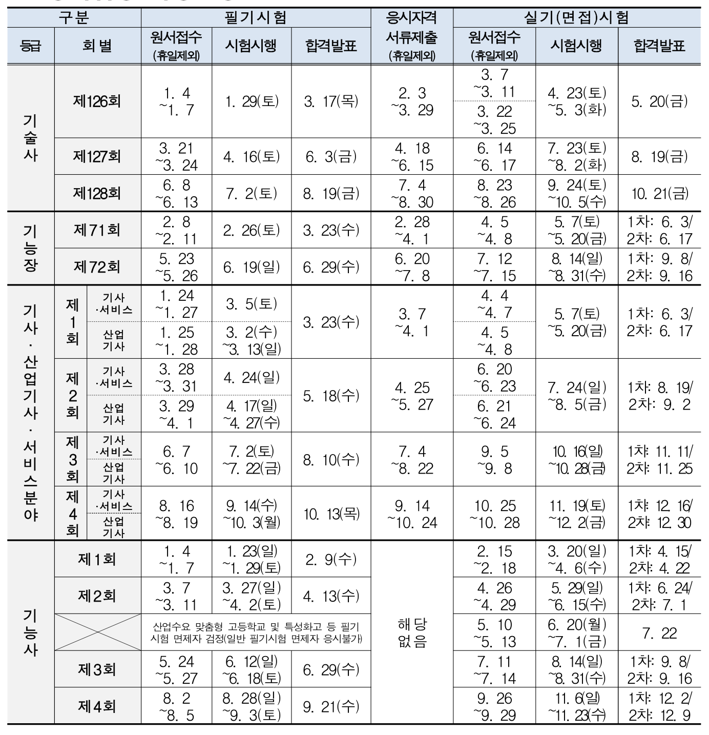 2022 국가기술자격 시험 일정
