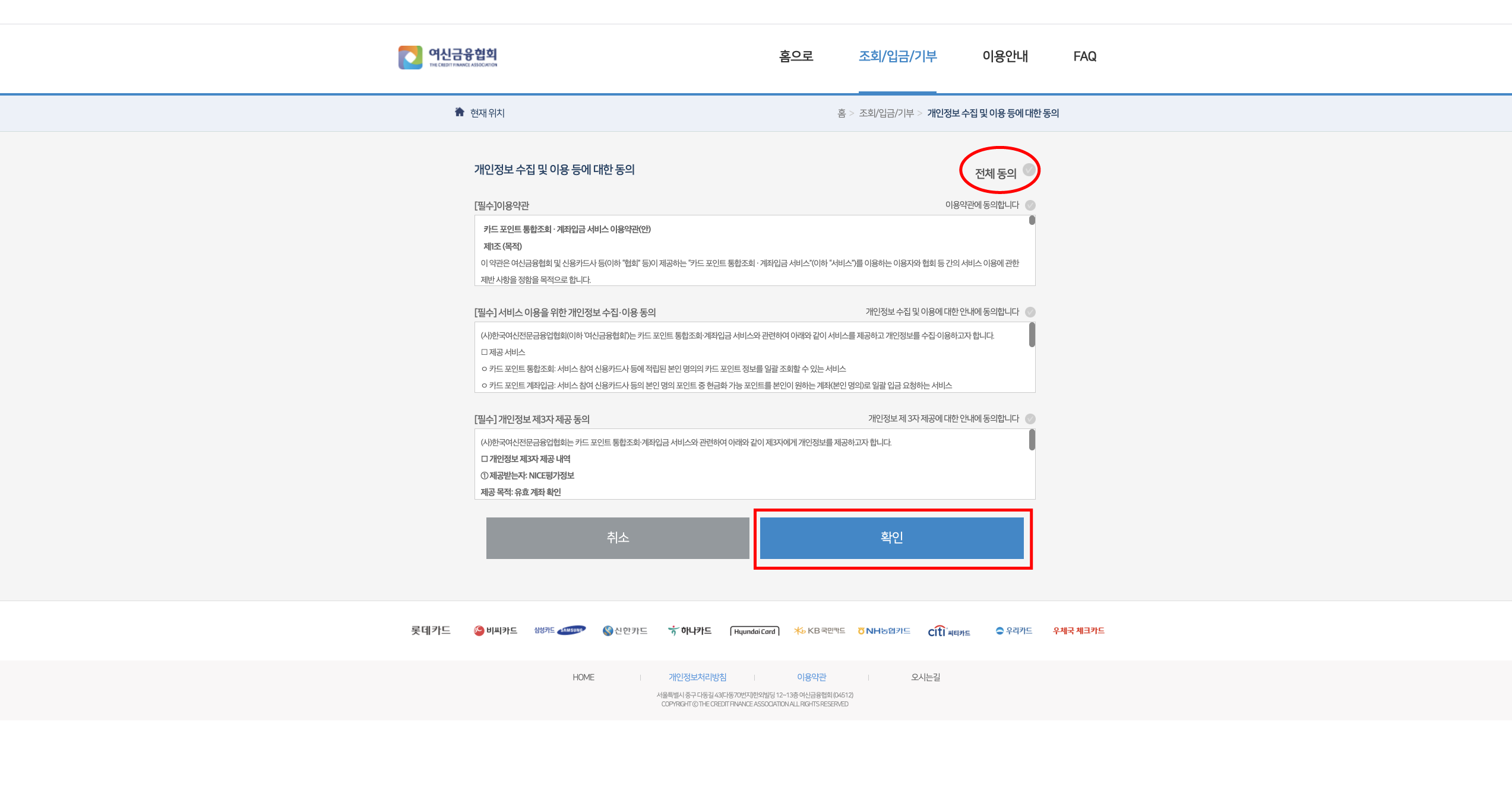 전체 동의를 클릭하고 확인을 클릭합니다.