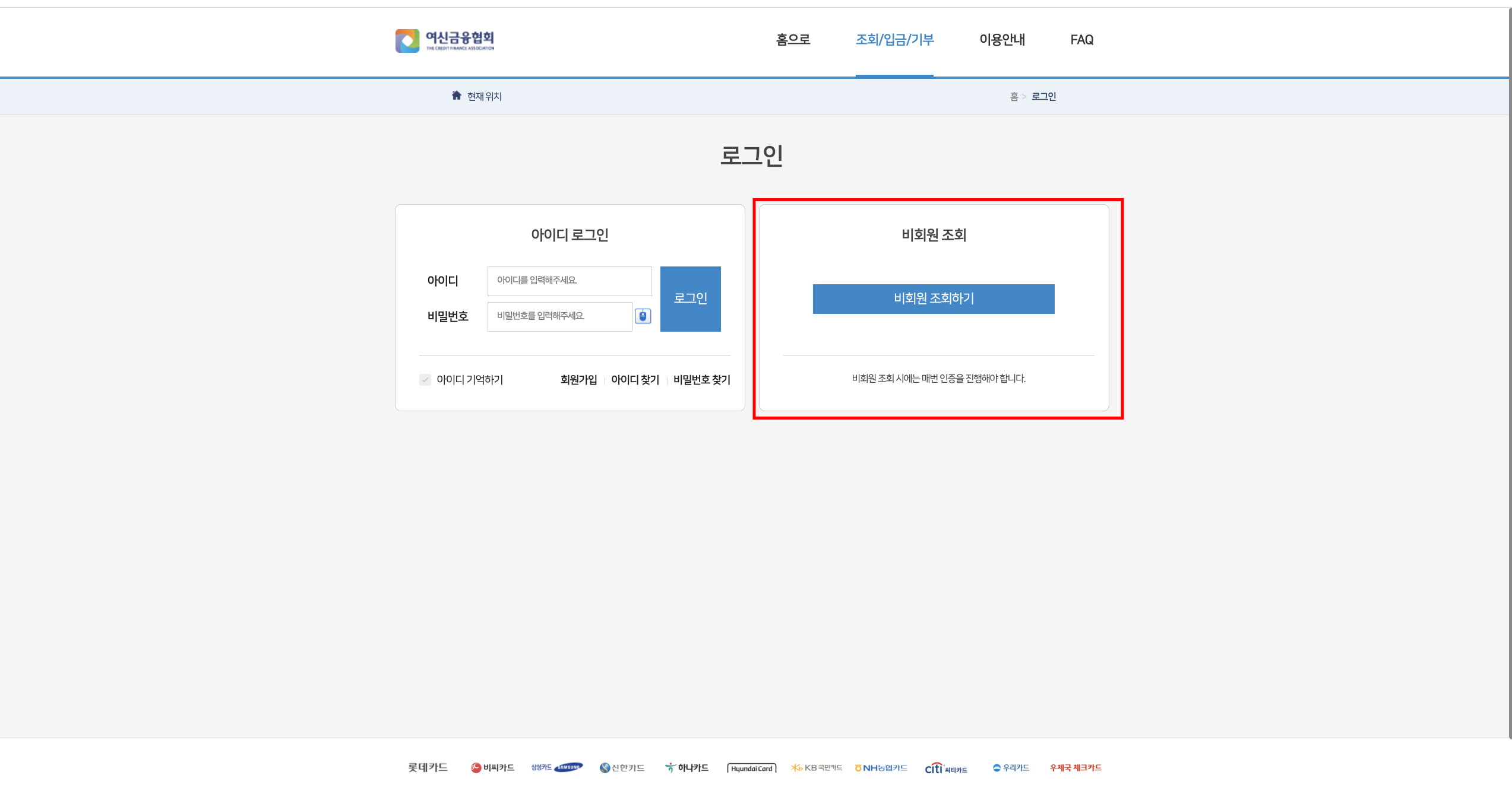 복잡한 회원가입할 필요 전혀 없습니다. 비회원 조회를 클릭합니다.