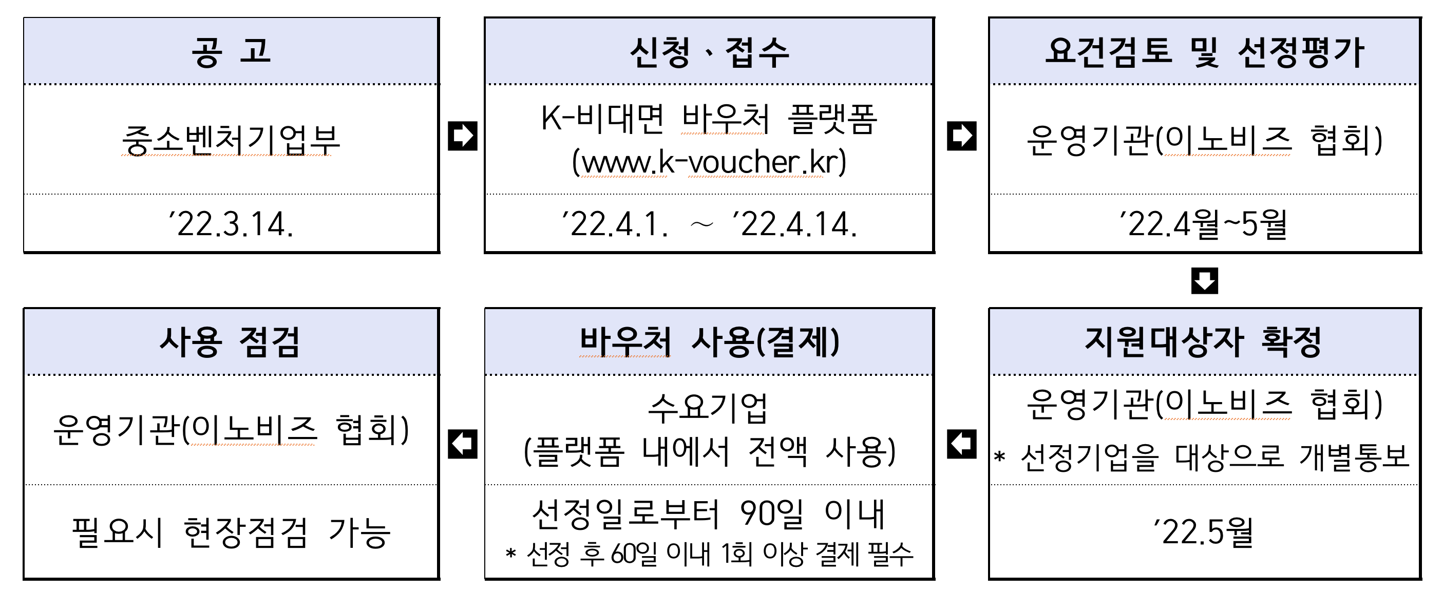 *단, 20년, 21년 비대면 서비스 바우처 사업에 선정되어 바우처를 일부라도 지원받은 수요기업은 22년도 재신청 불가