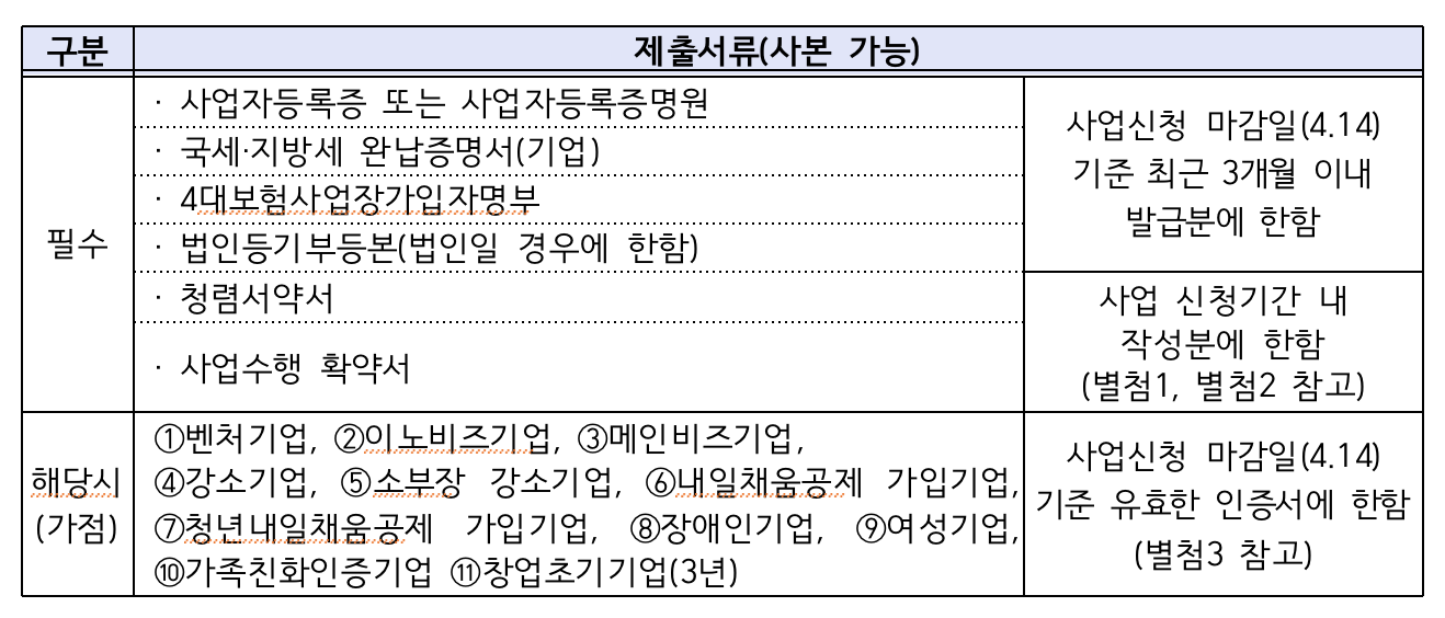 *대표자가 같은 다수 기업(법인, 사업체)은 1개 기업만 신청 가능