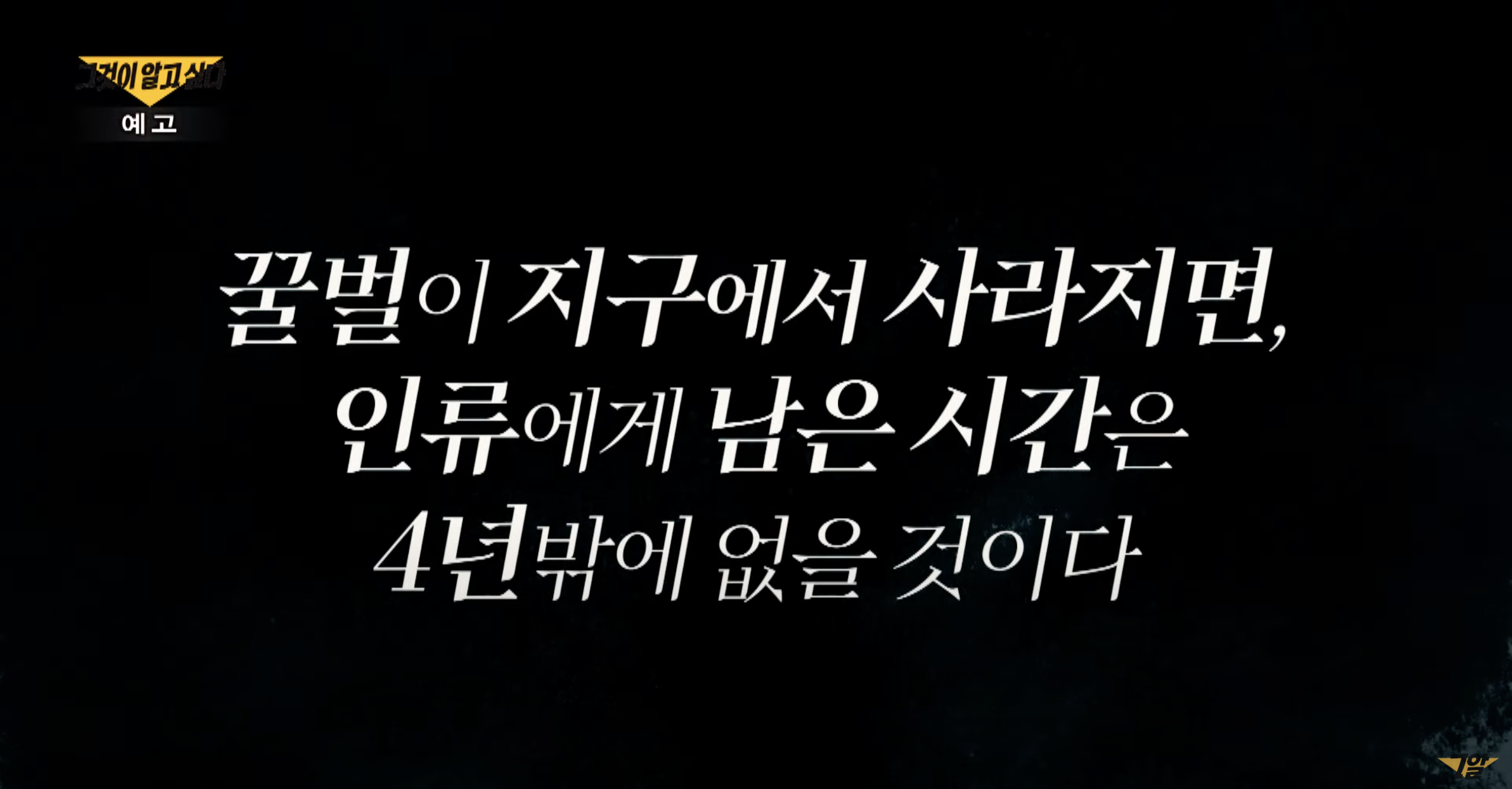미국에서는 꾸준하게 꿀벌 군집붕괴현상이 보고되고 있고, 안타깝게도 아직 이 미스터리를 풀 수 있는 확실한 실마리를 찾지 못했다. 그럼에도 불구하고 과학자들은 한 가지 의견에는 동의하고 있는데, 그것은 바로 꿀벌의 실종은 인류에게 심각한 위기가 될 수 있다는 것이다. 20세기의 천재 물리학자 아인슈타인도 아래와 같은 경고를 남겼다고 전해진다.
