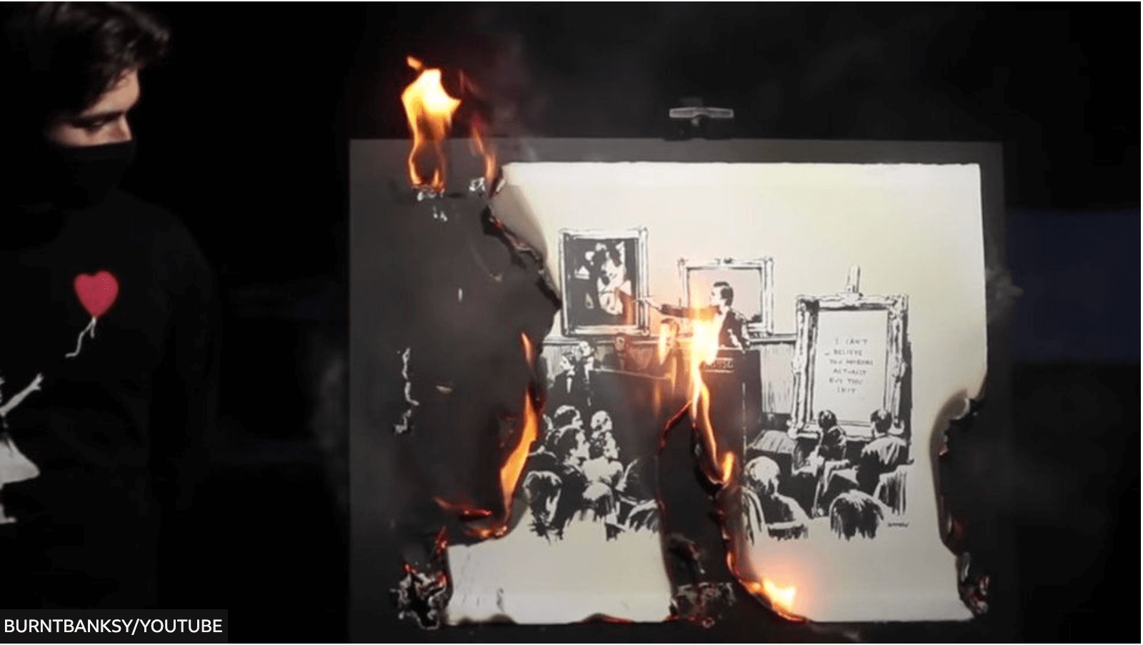 2017년 NFT의 원조라 불리는 '크립토펑크(Cryptopunks)' 프로젝트를 통해 만들어진 <외계인 초상화>에 이어 디지털 아티스트 비플 (본명: 마이크 윈켈만)의 <매일: 첫 5000일(Everydays: The First 5000 Days)>는 거장들의 실제 작품보다 높은 가격인 한화 약 785억 원에 팔리기도 했다. 이런 상황이다보니 디지털 컨텐츠 뿐만 아니라 실제 예술품이 NFT로 변신하기 시작했다. 블록체인 인젝티브프로토콜은 영국 작가 뱅크시의 작품을 NFT로 변환해 경매에 내어 놓았는데, 충격적인 건 진짜 그림은 불태워버렸다는 사실. 실물을 없애면 NFT 그림이 대체 불가의 진품이 된다는 이유여서다.