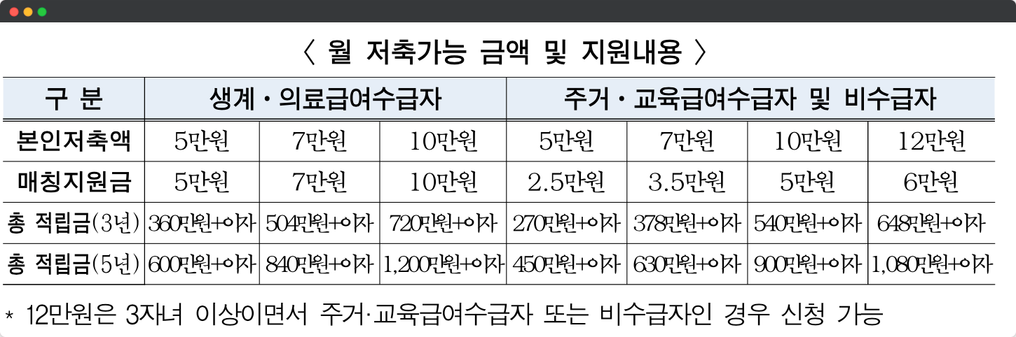 생계, 의료급여 수급자 총 적립액 = 저축액의 2배적립 + 이자