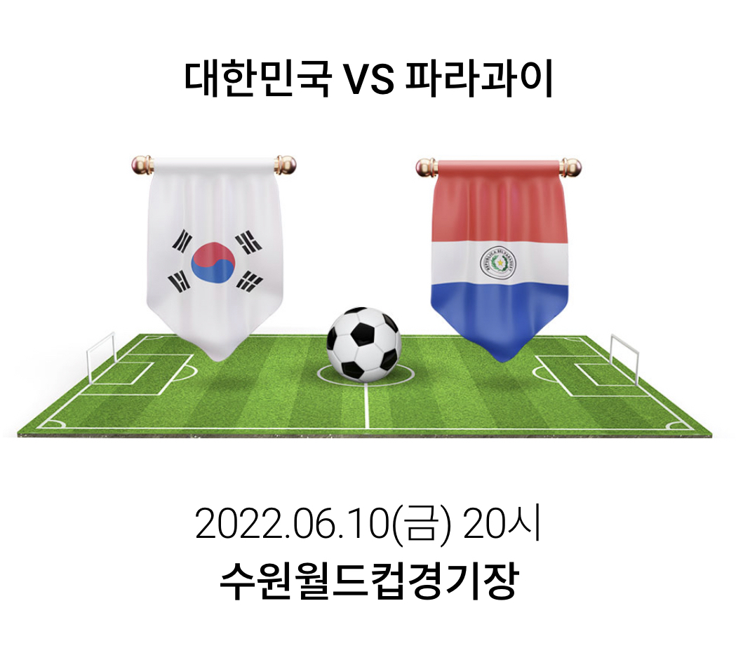 | 한국 VS 파라과이 | 2022년 6월 10일 (금) 오후 8시 | 2022년 5월 30일 (월) | 오후 5시 |