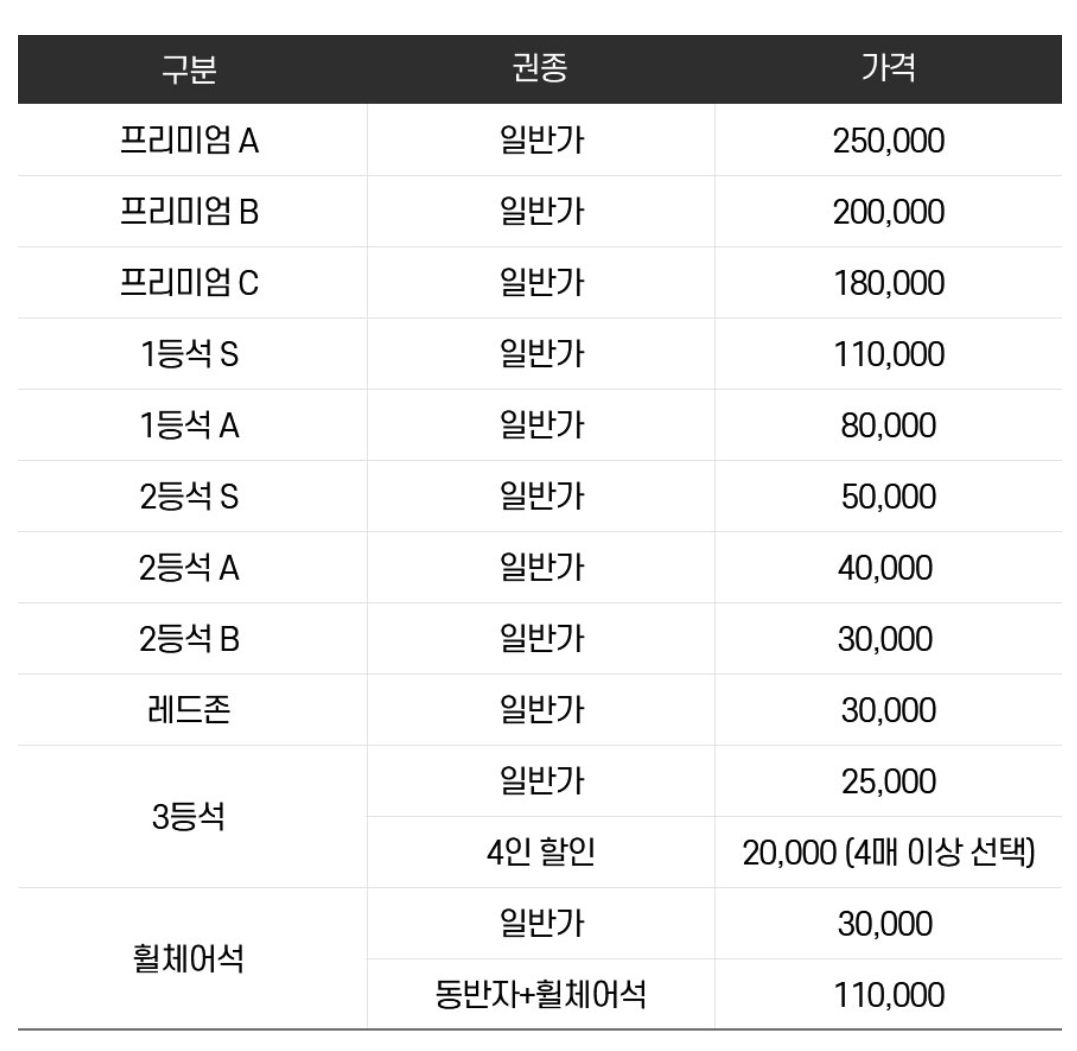 | 경기팀 | 경기날짜 | 예매 날짜 | 티켓 오픈 시간 |