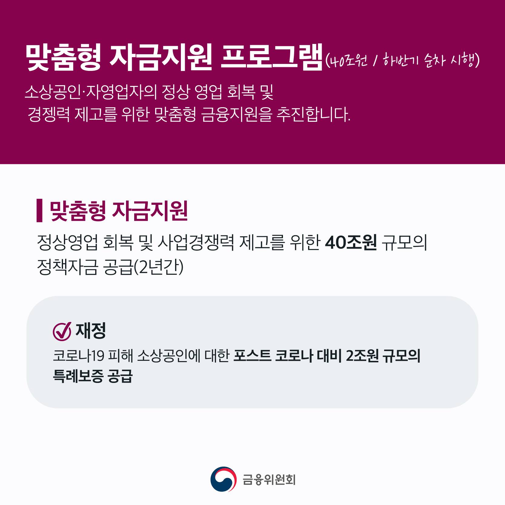 소상공인 · 자영업자의 정상 영업 회복 및 경쟁력 제고를 위한 맞춤형 금융지원을 추진합니다.