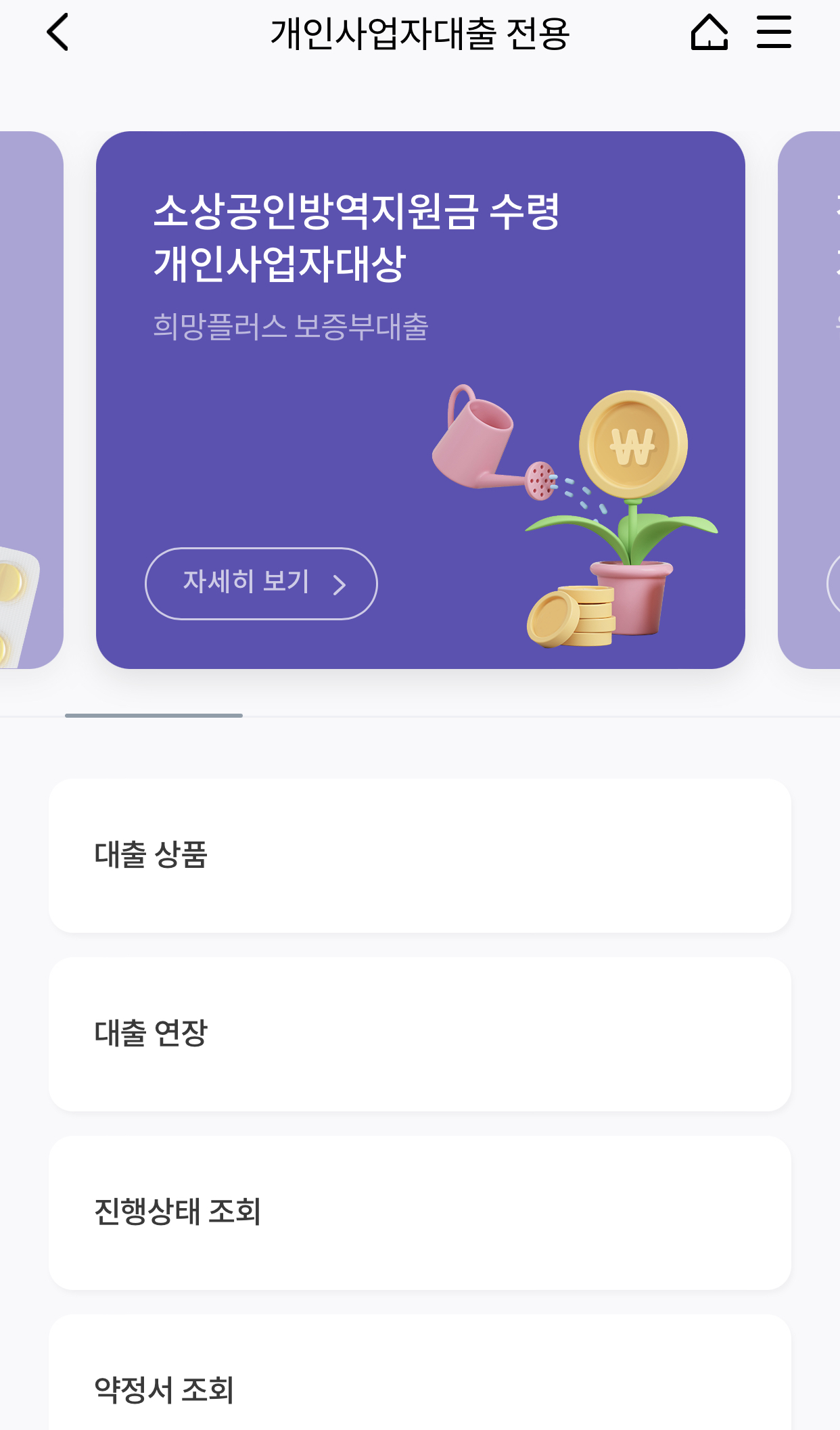 시중 은행 앱을 통해 비대면으로 신청가능합니다. 각 은행마다 메뉴가 상이하나 주거래 은행 앱에서 개인사업자 대출 항목 중 '희망대출플러스'를 찾으시면 됩니다. 비대면 신청 가능 은행 앱은 다음과 같습니다. 하반기 희망대출플러스에 제주은행이 새롭게 추가되었습니다.