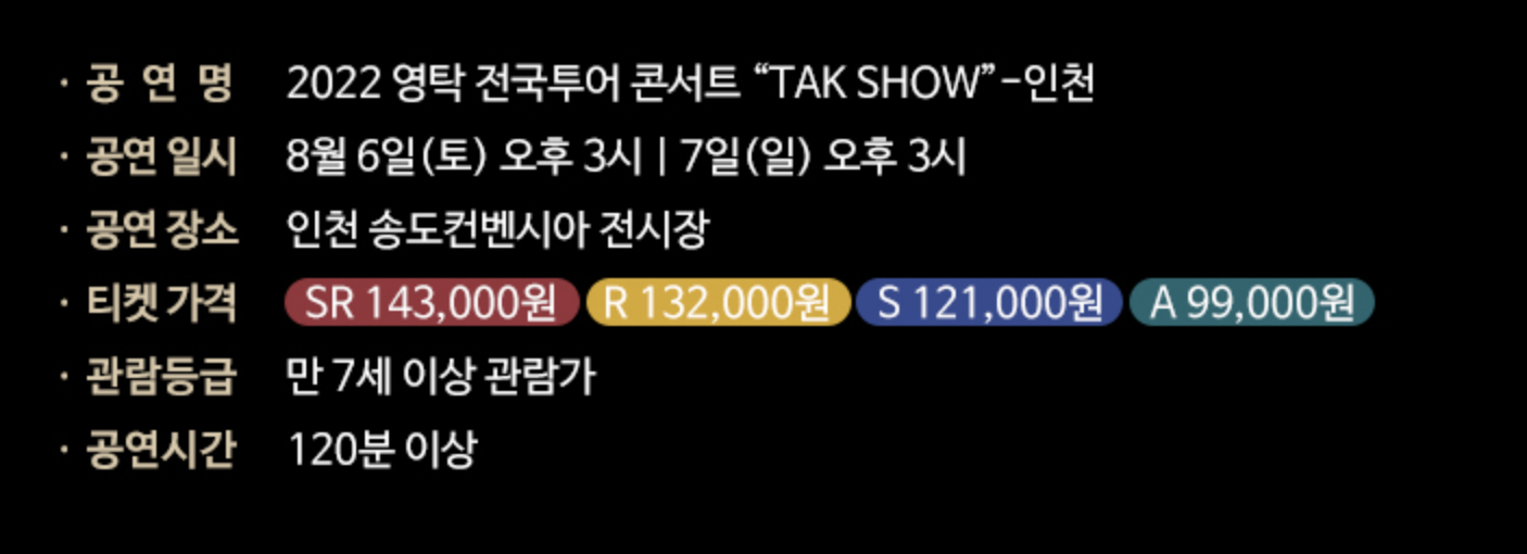영탁 단독 콘서트 <TAK SHOW> 가격 좌석 정보