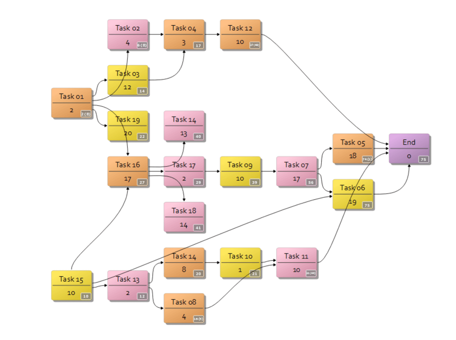 - 종속작업이 복수일 때는 최소 LST의 최소값이 그 작업의 LFT가 됨.