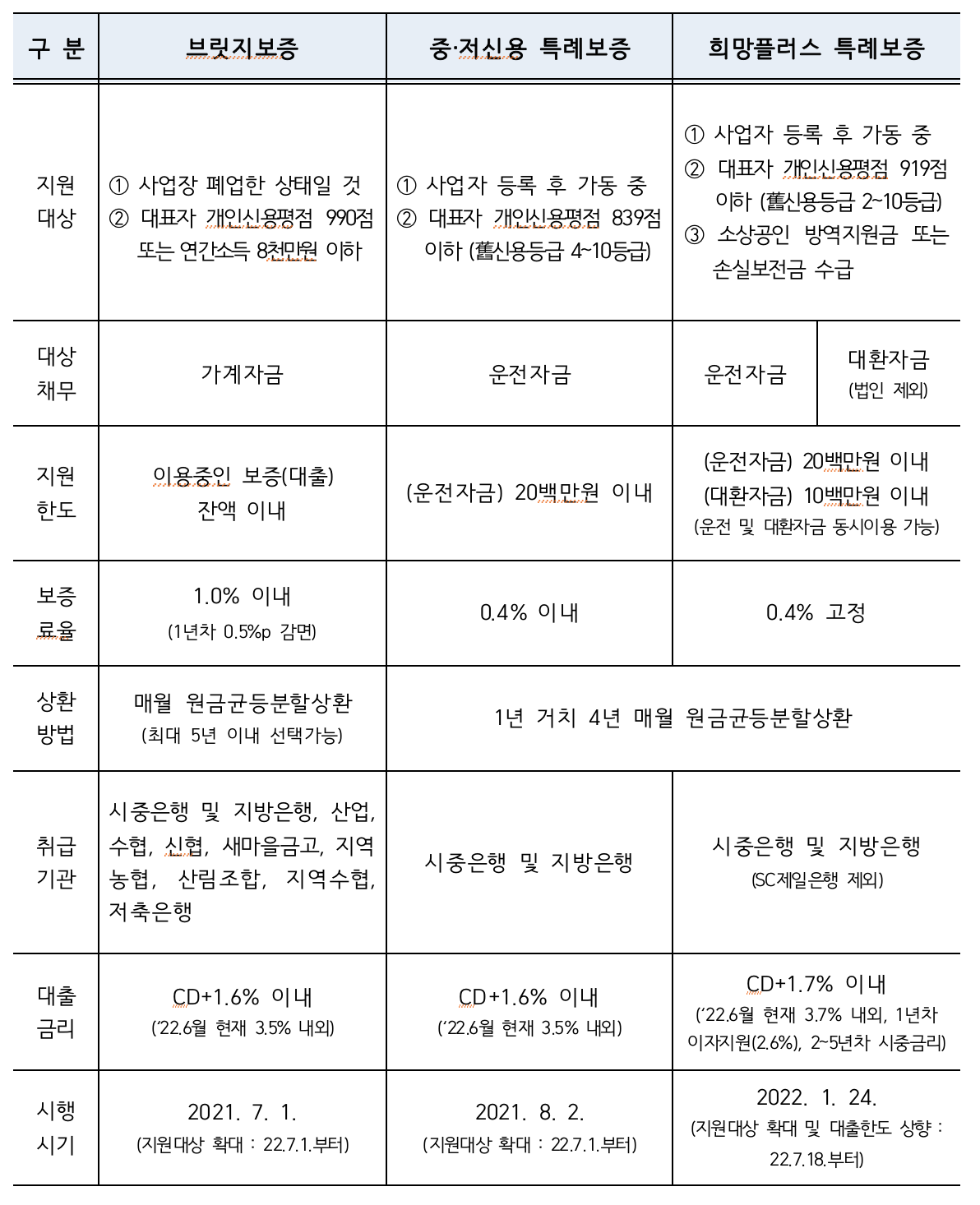▼ 2022 하반기 소상공인 특례보증 대출 지원 대상 총정리 (공문)▼