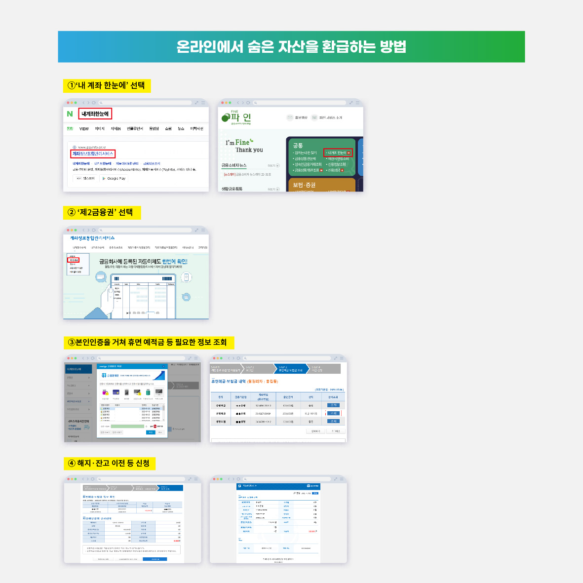파인에서 숨은 자산 (제 2금융권) 환급하는 절차는 위 그림을 클릭하시면 이미지가 크게 확대됩니다.
