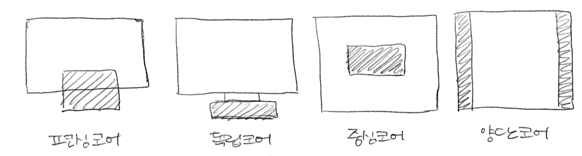 📌 코어의 종류: 편심코어, 독립코어, 중심코어, 양단코어